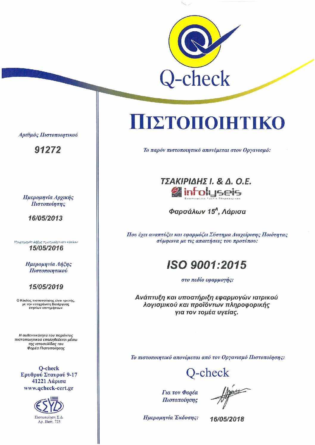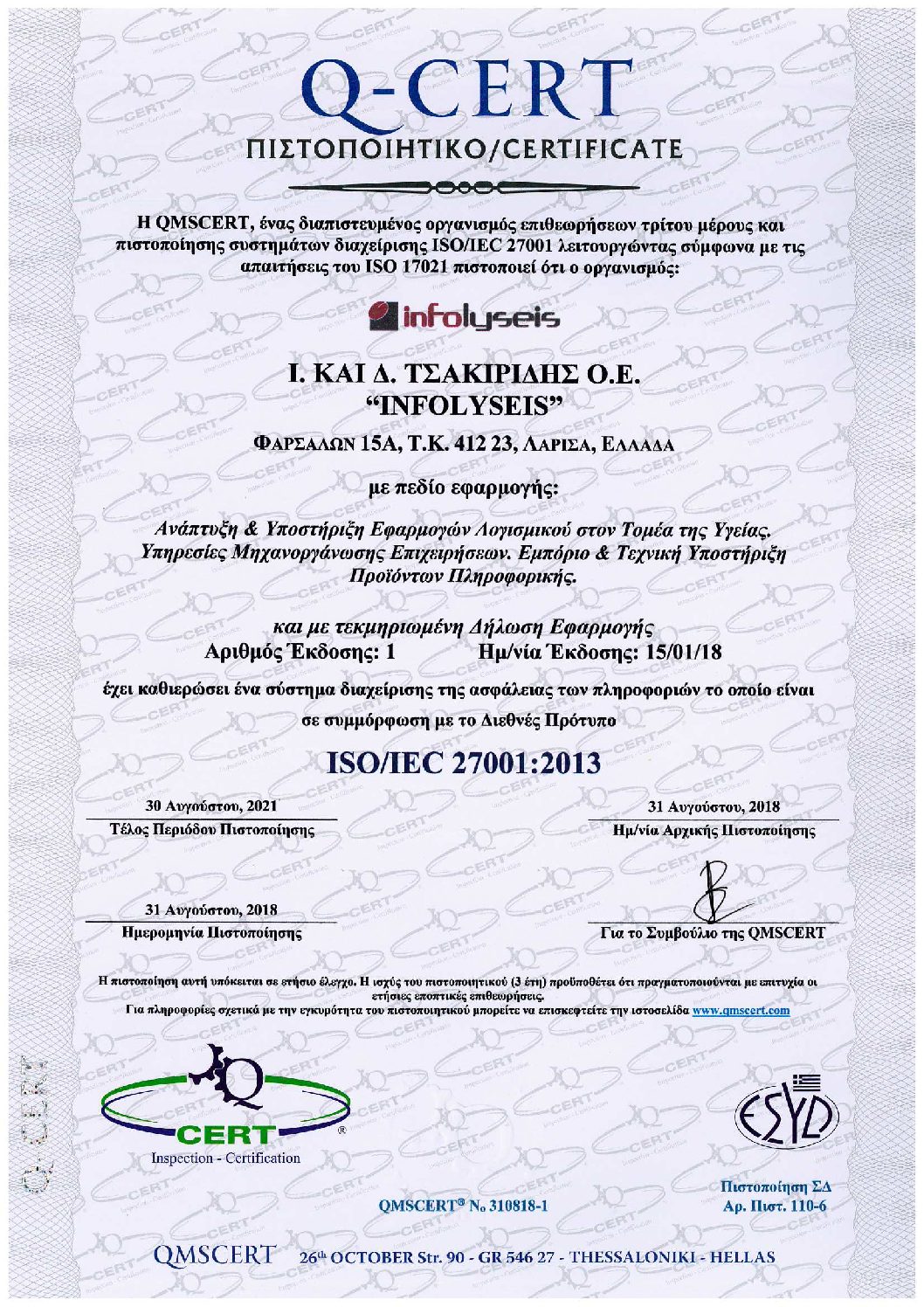 Εναρμονιζόμενη με τα διεθνή πρότυπα, η Infolyseis εφαρμόζει ολοκληρωμένο Πρόγραμμα Διασφάλισης Ποιότητας(ΣΔΑΠ), θέτοντας αυστηρές προδιαγραφές λειτουργίας για το σύνολο των διαδικασιών της. Όλοι οι άνθρωποι της εταιρείας εργάζονται καθημερινά με προσήλωση στις αρχές της, διασφαλίζοντας την ανάπτυξη και διάθεση ποιοτικών και αξιόπιστων προϊόντων και υπηρεσιών.